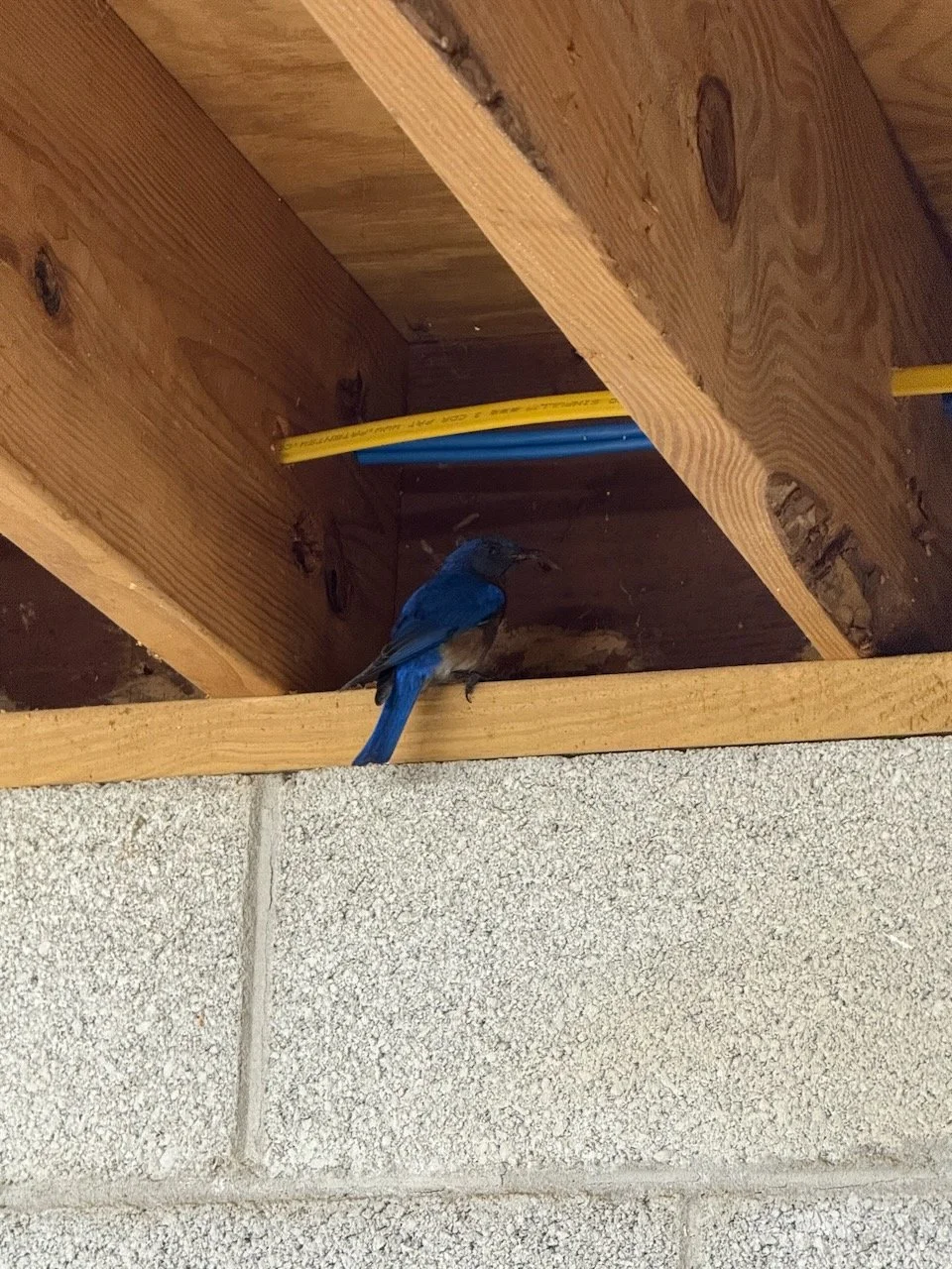 Except it flew out. It was a bluebird. It flew out the open garage door. As Ennie was closing the door three more bluebirds flew out.